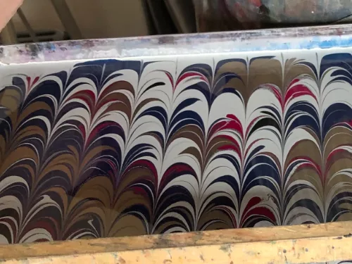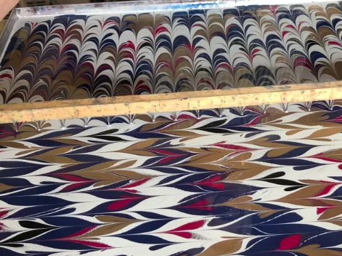 In this workshop you will build on your existing skills and come away with a fresh approach to old favorites. Previous marbling experience required. All materials provided.